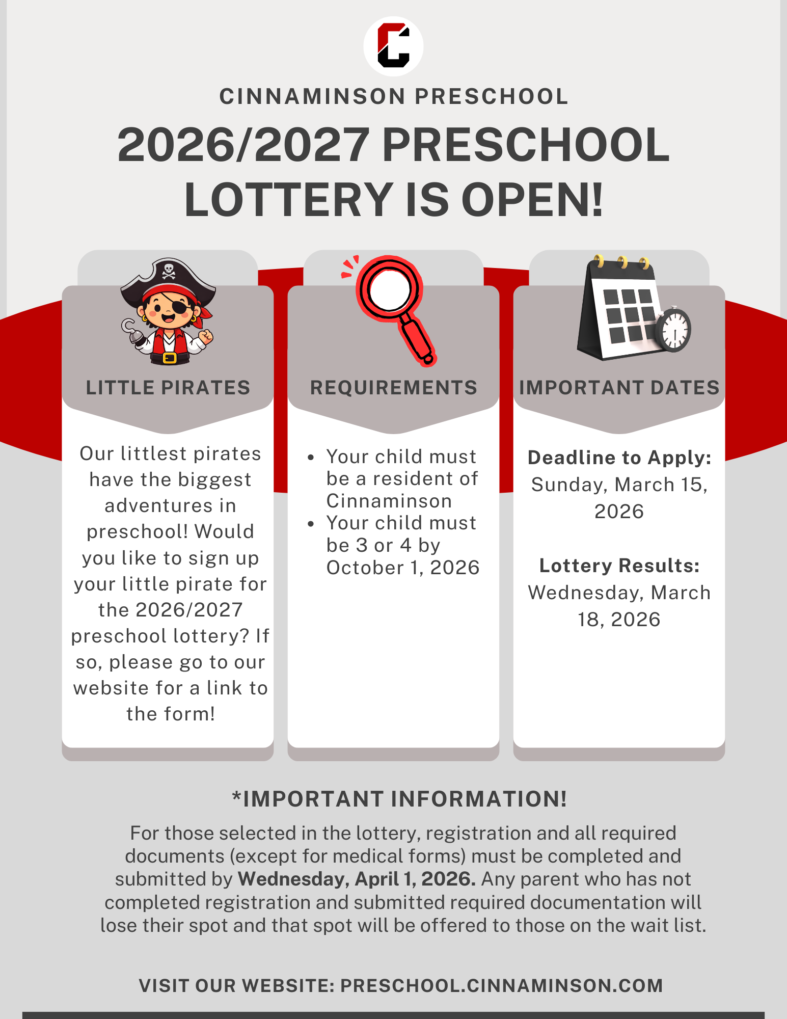 Kindergarten Registration is now open for the 2026-27 school year. Please visit our website at https://www.cinnaminson.com/kindergarten-registration for more information and to register your child!...
