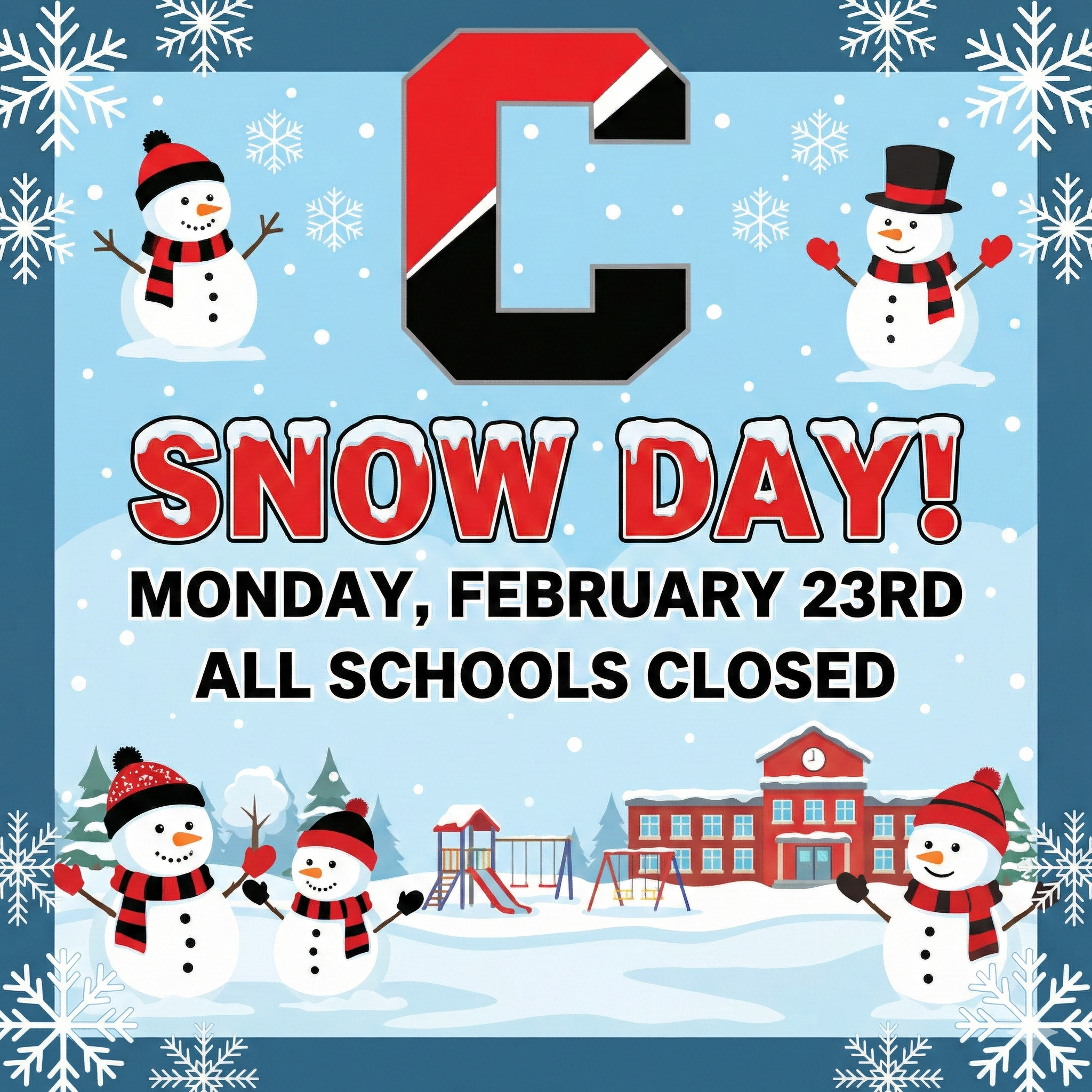 Good afternoon!All Cinnaminson Township Public Schools are closed on Monday, February 23rd due to inclement weather.Stay safe, Pirates!